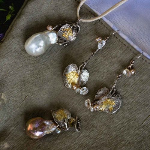 Orecchini Gingko con perla rosa